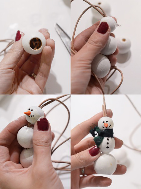 Empezamos por un muñeco de nieve, está realizado con unas bolas de madera y un cordón de cuero. Esta manualidad puede ser un collar para los niños o un adorno navideño, yo me inclino por esto ultimo pero cada uno puede hacer en su casa el proyecto que mas le guste, solo hay que alargar el cordón o acortarlo. Todos los pasos están aquí: Muñeco de nieve de madera.